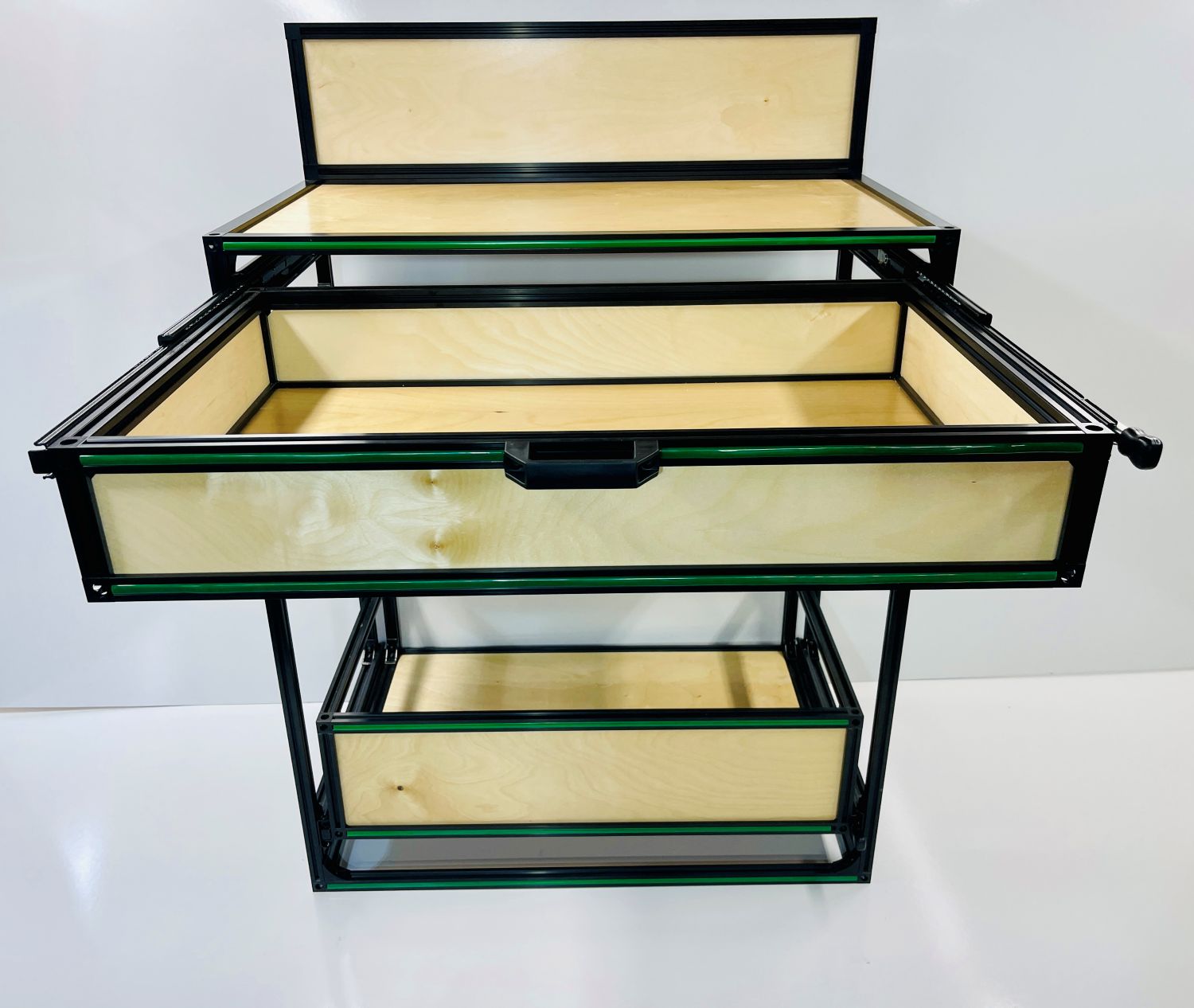 This extra drawer can be mounted into the very top storage area of the Ice Chest Slide or into an open space below in the bottom half of the cabinet framework.